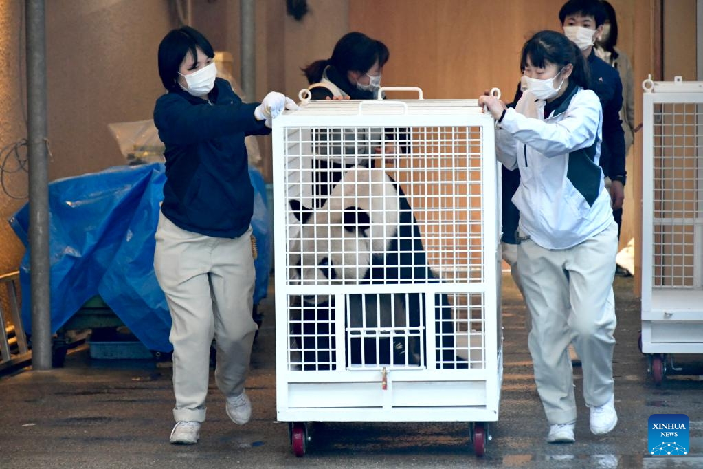Around 7:15 p.m. local time, the three pandas boarded a plane that will take off from the Kansai International Airport to a facility in southwest China's Sichuan province, escorted by Koji Imazu, director of the park.