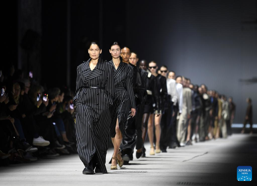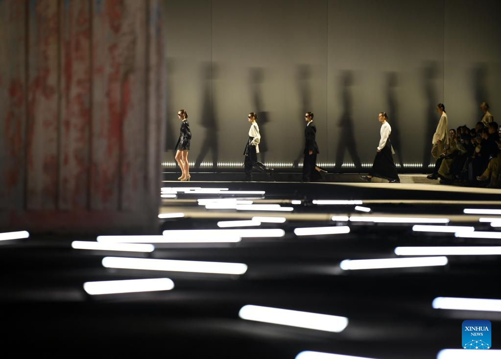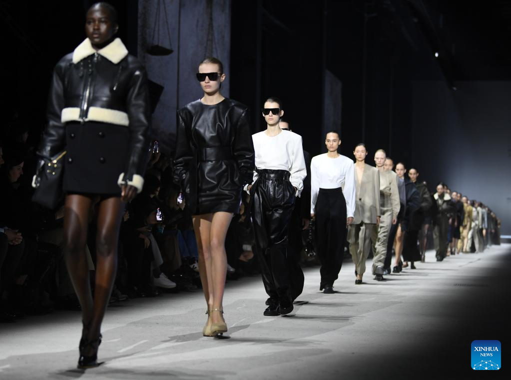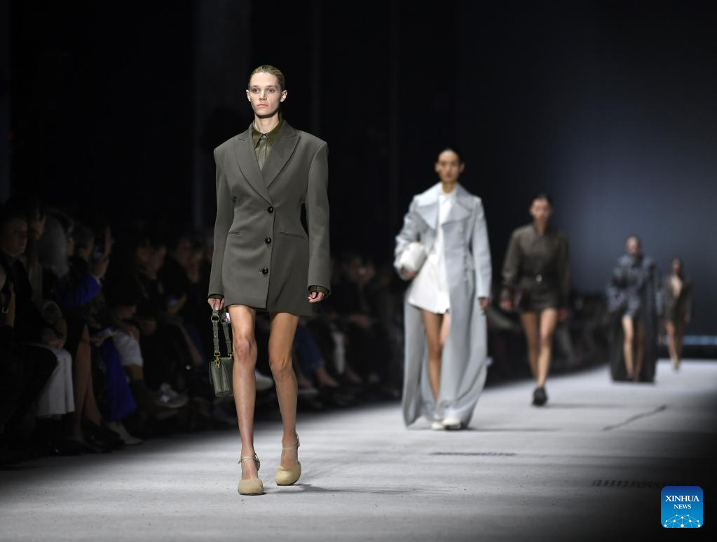 Models present creations from Tod's women's Fall/Winter 2023/2024 collection during Milan Fashion Week in Milan, Italy, on Feb. 24, 2023. (Xinhua/Jin Mamengni)