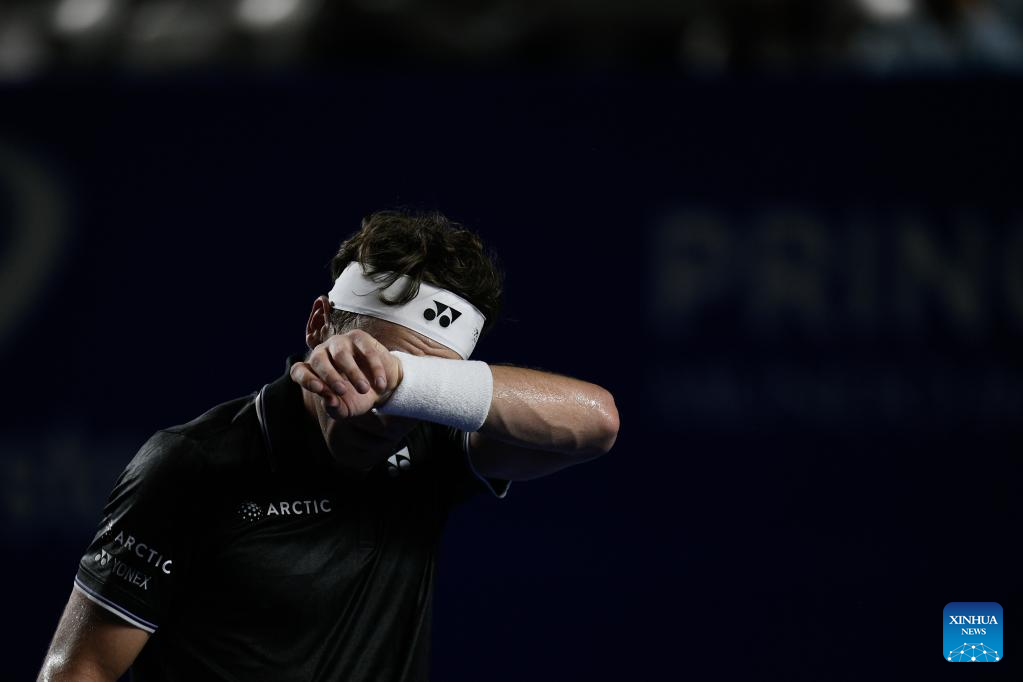 Casper Ruud of Norway reacts during the men's singles second round match against Daniel Taro of Japan at the 2023 ATP Mexican Open tennis tournament in Acapulco, Mexico, March 1, 2023. (Xinhua/Xin Yuewei)