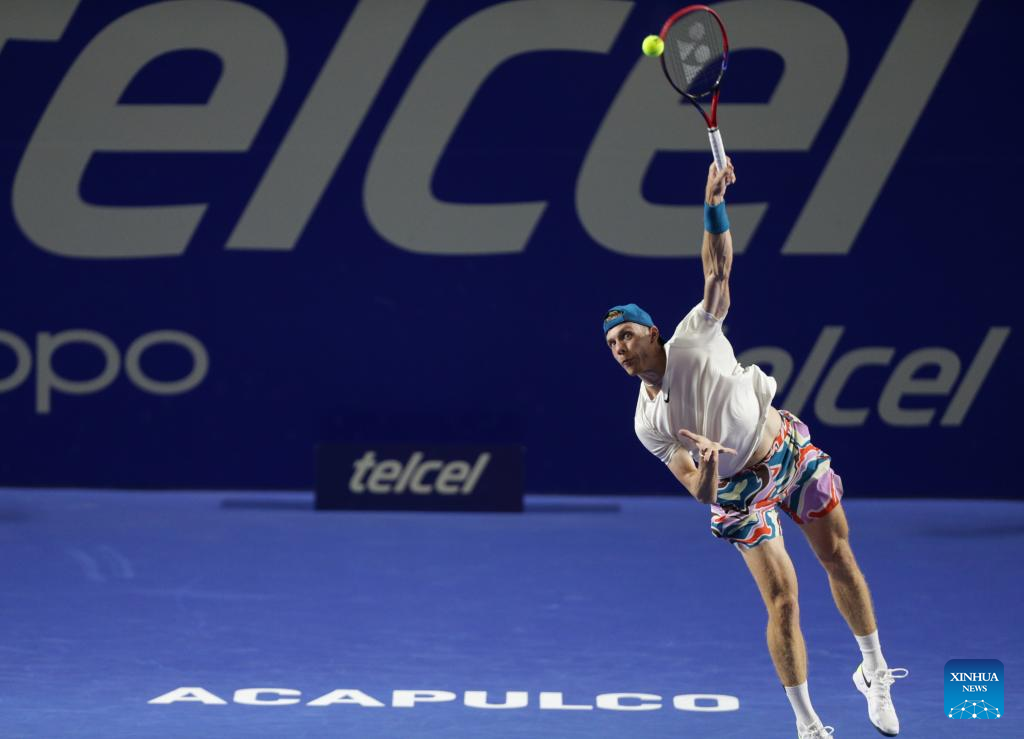 Denis Shapovalov of Canada serves during the men's singles second round match against Taylor Fritz of the United States at the 2023 ATP Mexican Open tennis tournament in Acapulco, Mexico, March 1, 2023. (Photo by Francisco Canedo/Xinhua)