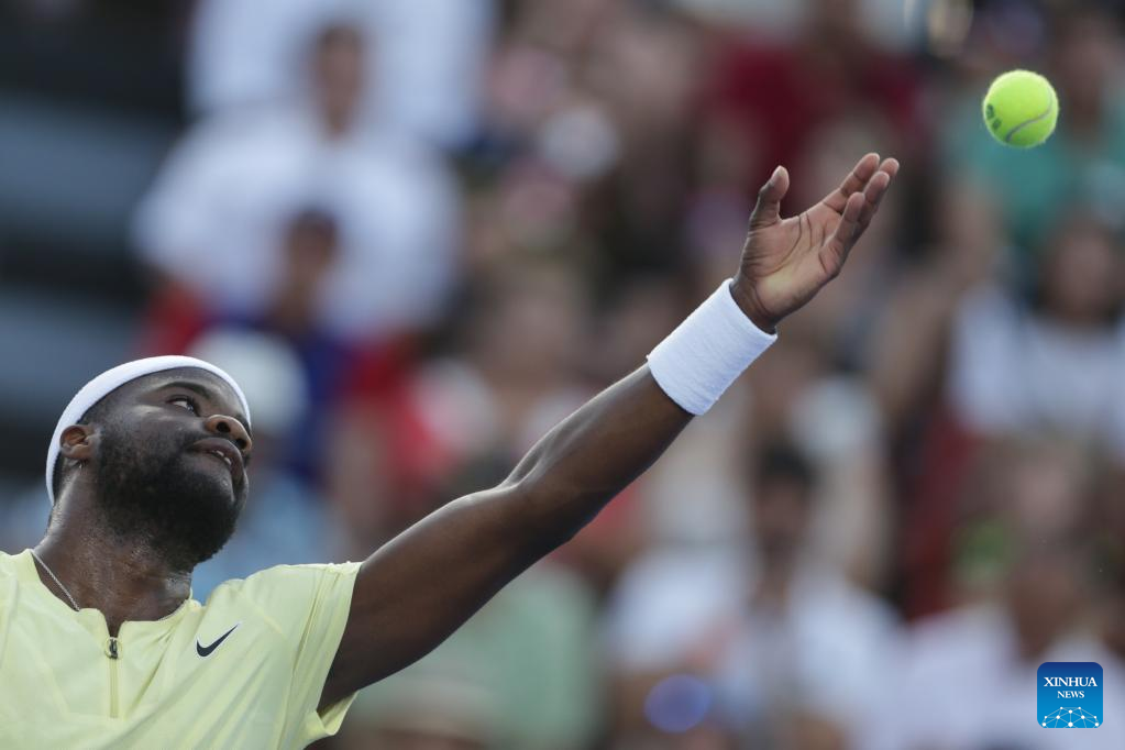 Frances Tiafoe of the United States serves during the men's singles second round match against Feliciano Lopez of Spain at the 2023 ATP Mexican Open tennis tournament in Acapulco, Mexico, March 1, 2023. (Photo by Francisco Canedo/Xinhua)