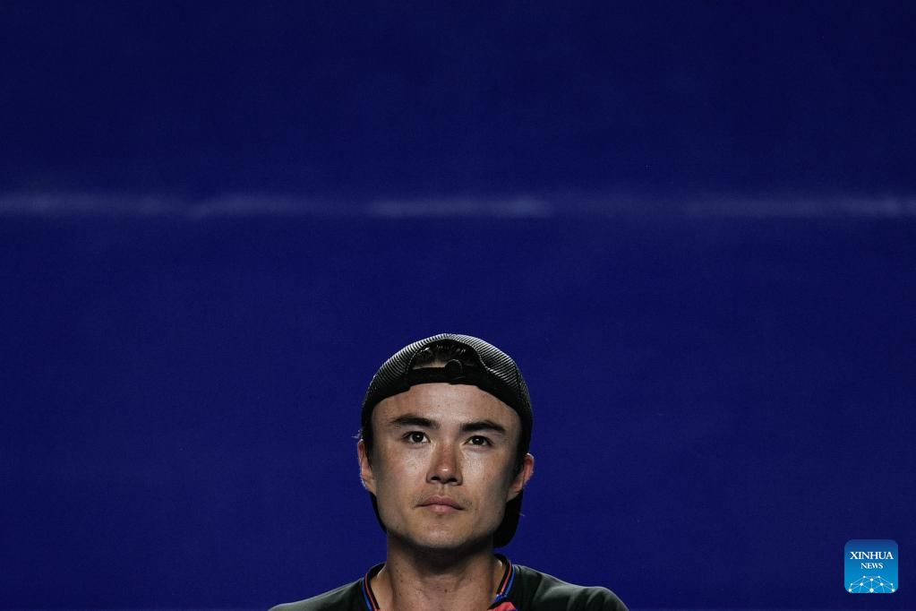 Daniel Taro of Japan reacts during the men's singles second round match against Casper Ruud of Norway at the 2023 ATP Mexican Open tennis tournament in Acapulco, Mexico, March 1, 2023. (Xinhua/Xin Yuewei)