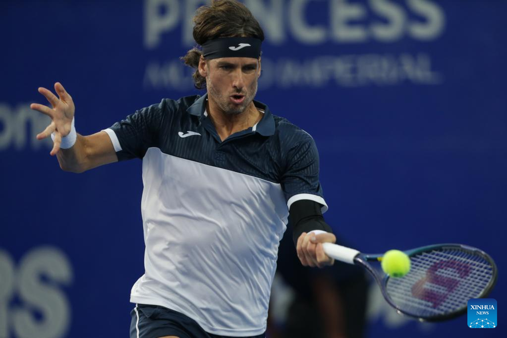 Feliciano Lopez of Spain hits a return during the men's singles second round match against Frances Tiafoe of the United States at the 2023 ATP Mexican Open tennis tournament in Acapulco, Mexico, March 1, 2023. (Photo by Francisco Canedo/Xinhua)
