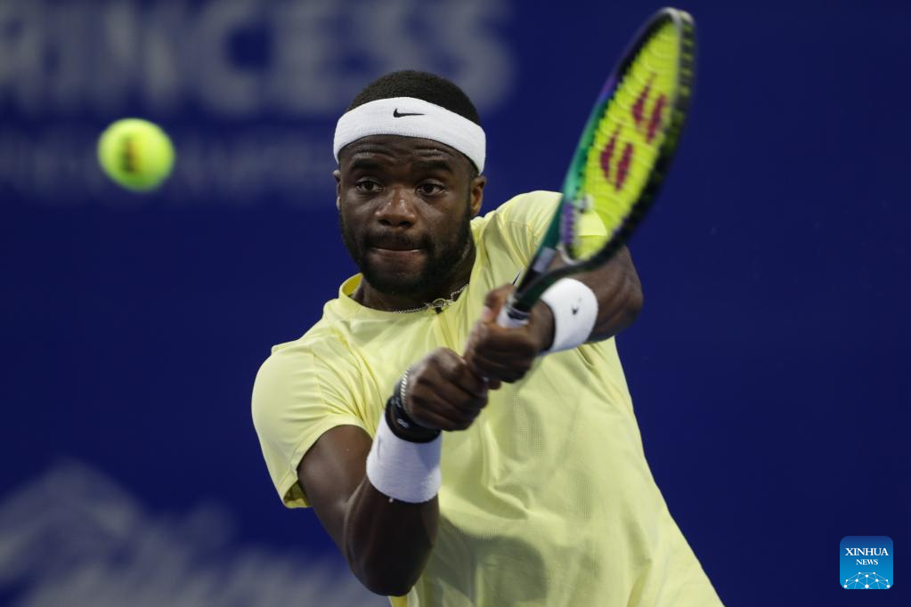 Frances Tiafoe of the United States hits a return during the men's singles second round match against Feliciano Lopez of Spain at the 2023 ATP Mexican Open tennis tournament in Acapulco, Mexico, March 1, 2023. (Photo by Francisco Canedo/Xinhua)