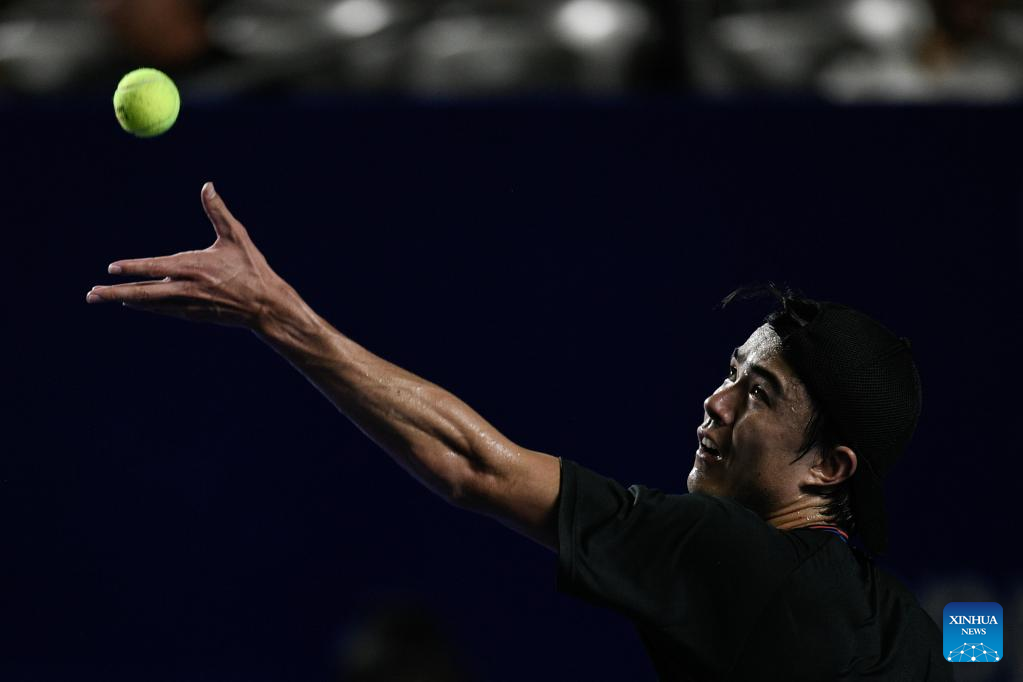 Daniel Taro of Japan serves during the men's singles second round match against Casper Ruud of Norway at the 2023 ATP Mexican Open tennis tournament in Acapulco, Mexico, March 1, 2023. (Xinhua/Xin Yuewei)