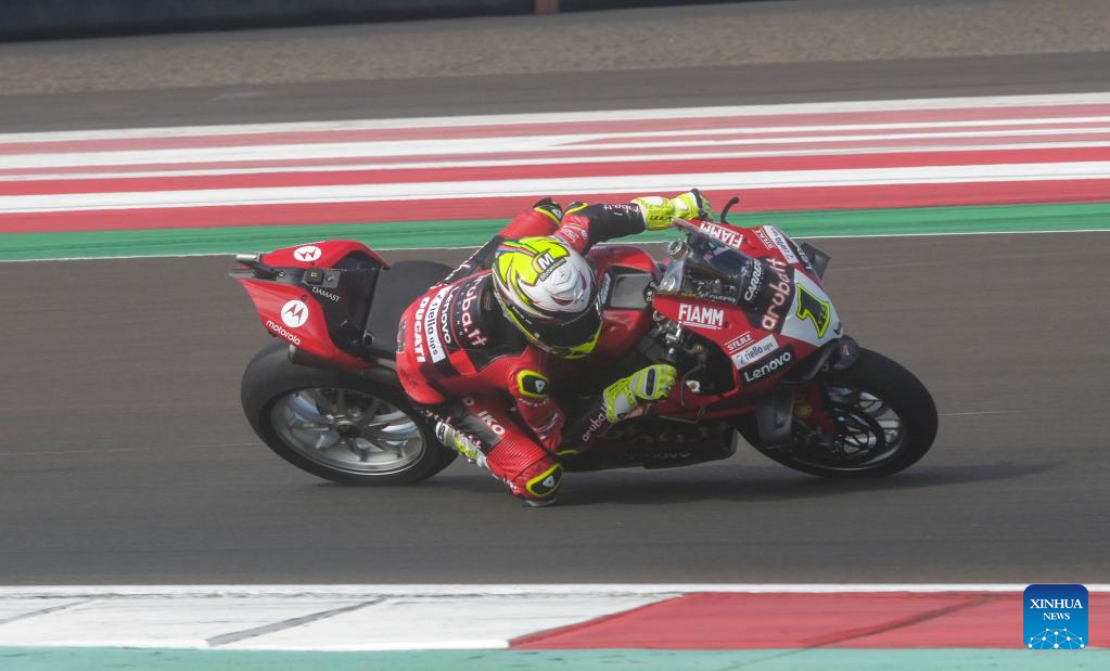 Spanish rider Alvaro Bautista of Aruba.it Racing-Ducati races during the 3rd free practice of WorldSBK 2023 Motul Indonesian Round at Mandalika Circuit, Mandalika of West Nusa Tenggara province in Indonesia, March 4, 2023. (Xinhua/Zulkarnain)