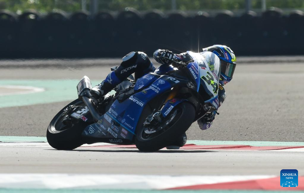 Toprak Razgatlioglu of Türkiye from Pata Yamaha Prometeon WorldSBK races during the Superpole of WorldSBK 2023 Indonesian Round at Mandalika Circuit, Mandalika of West Nusa Tenggara province in Indonesia, March 4, 2023. (Xinhua/Zulkarnain)