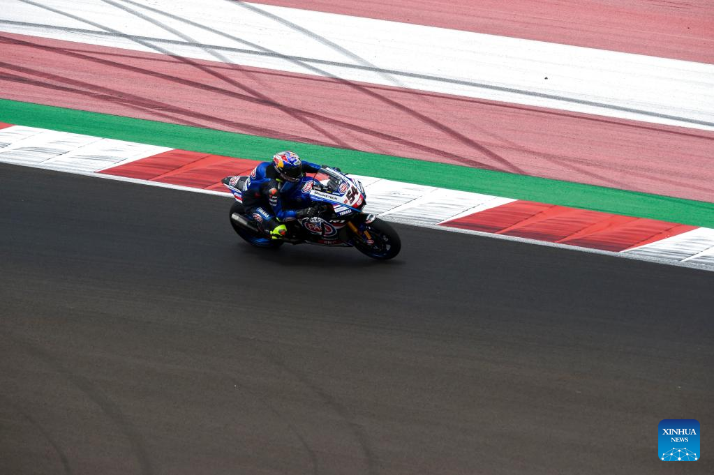 Italian rider Andrea Locatelli of Pata Yamaha Prometeon WorldSBK races during the Superpole of WorldSBK 2023 Indonesian Round at Mandalika Circuit, Mandalika of West Nusa Tenggara province in Indonesia, March 4, 2023. (Xinhua/Zulkarnain)