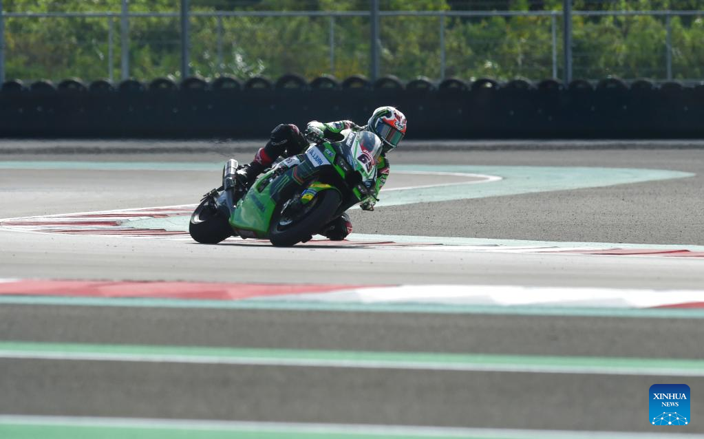 British rider Jonathan Rea of Kawasaki Racing Team races during the 3rd free practice of WorldSBK 2023 Motul Indonesian Round at Mandalika Circuit, Mandalika of West Nusa Tenggara province in Indonesia, March 4, 2023. (Xinhua/Zulkarnain)