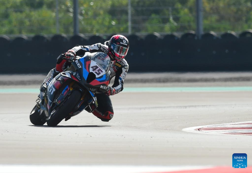 British rider Scott Redding of ROKiT BMW Motorrad WorldSBK Team races during the 3rd free practice of WorldSBK 2023 Motul Indonesian Round at Mandalika Circuit, Mandalika of West Nusa Tenggara province in Indonesia, March 4, 2023. (Xinhua/Zulkarnain)