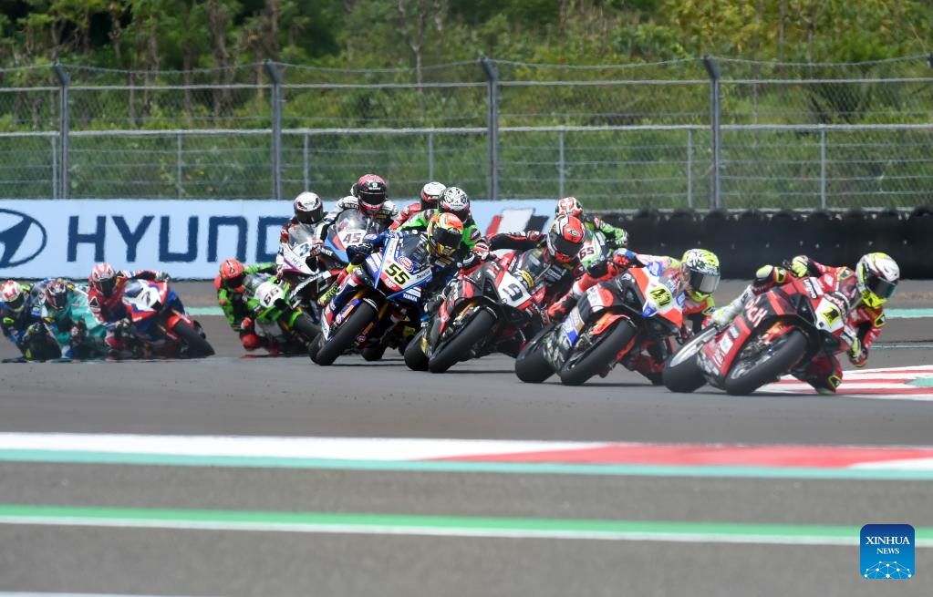 Riders race during Race 1 of WorldSBK 2023 Indonesian Round at Mandalika Circuit, Mandalika of West Nusa Tenggara province in Indonesia, March 4, 2023. (Xinhua/Zulkarnain)