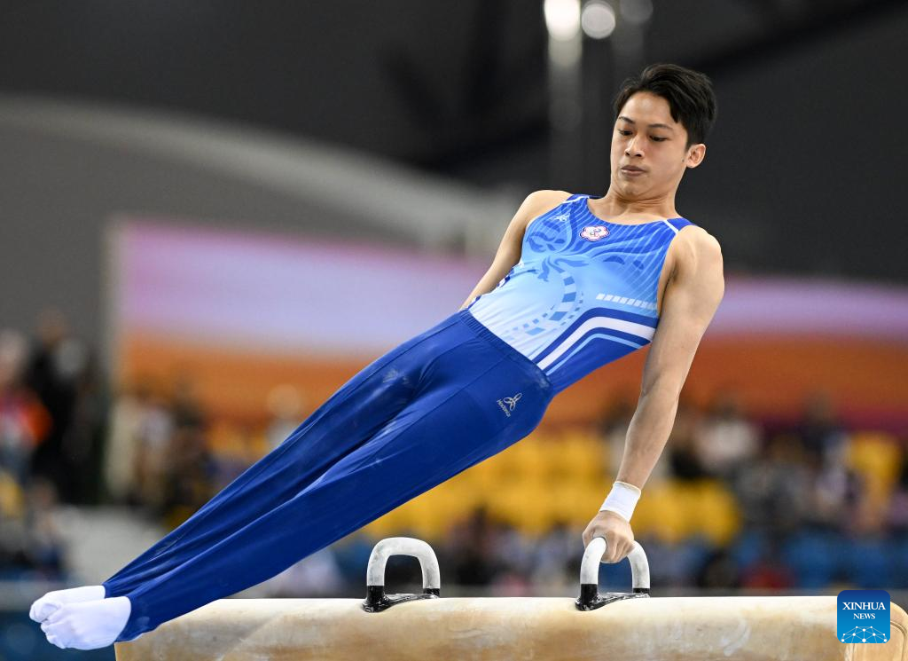 Shiao Yu-Jan of Chinese Taipei competes during the pommel horse final at the 15th FIG Artistic Gymnastics World Cup in Doha, Qatar, March 3, 2023. (Photo by Nikku/Xinhua)