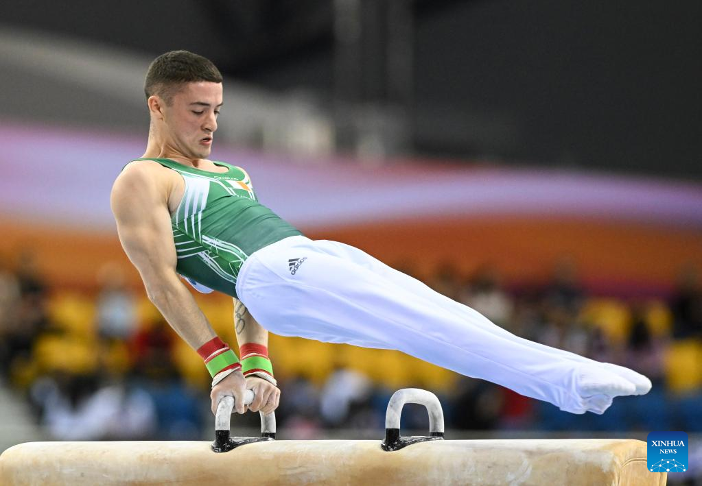 Rhys Mc Clenaghan of Ireland competes during the pommel horse final at the 15th FIG Artistic Gymnastics World Cup in Doha, Qatar, March 3, 2023. (Photo by Nikku/Xinhua)