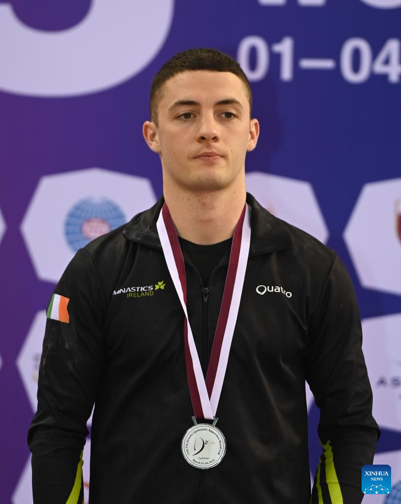 Silver medalist Rhys Mc Clenaghan of Ireland poses during the awarding ceremony after the pommel horse final at the 15th FIG Artistic Gymnastics World Cup in Doha, Qatar, March 3, 2023. (Photo by Nikku/Xinhua)