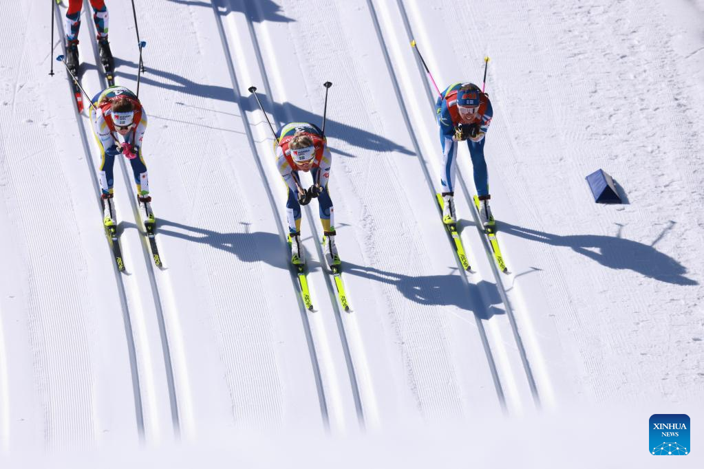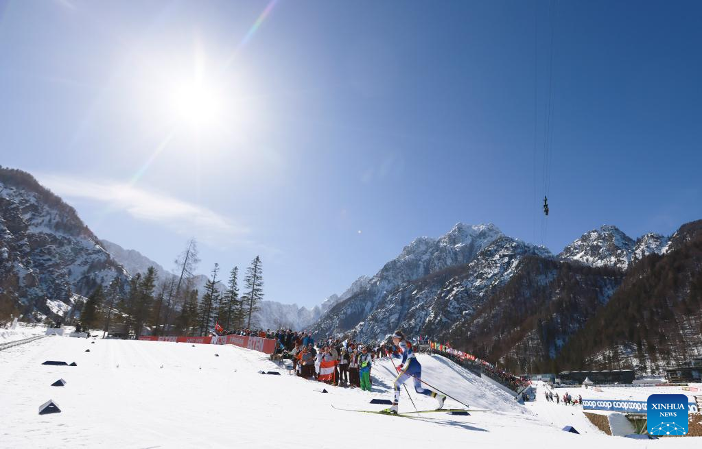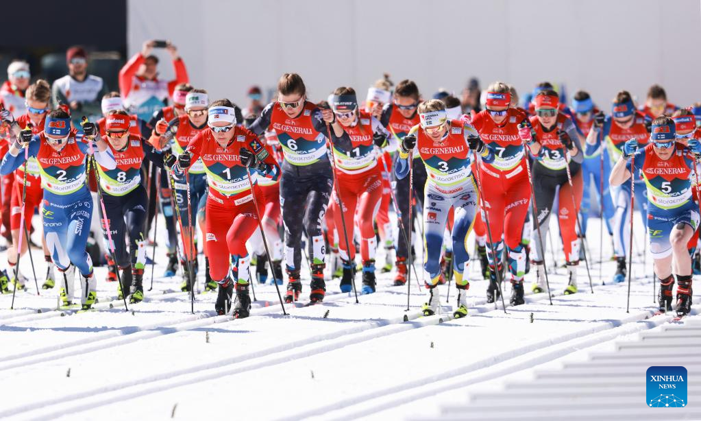Skiers compete during the Women's 30km Mass Start Classic of Cross-Country skiing competition at the FIS Nordic World Ski Championships in Planica, Slovenia, March 4, 2023. (Photo by Zeljko Stevanic/Xinhua)