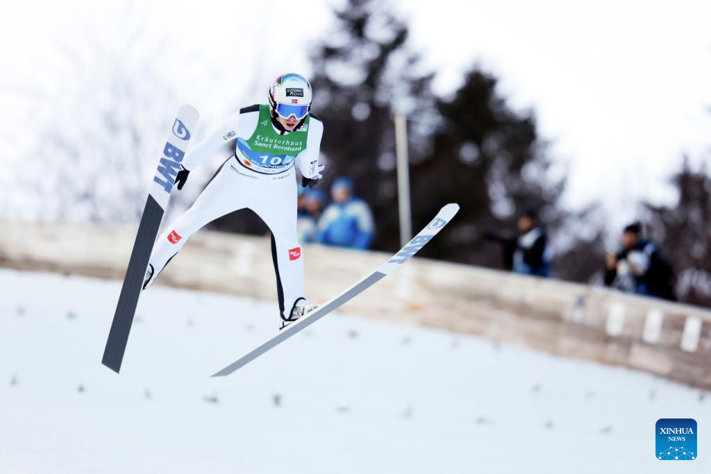 Stefan Kraft of Austria competes during the men's Ski Jumping Team HS138 at the FIS Nordic World Ski Championships in Planica, Slovenia, March 4, 2023. (Photo by Zeljko Stevanic/Xinhua)