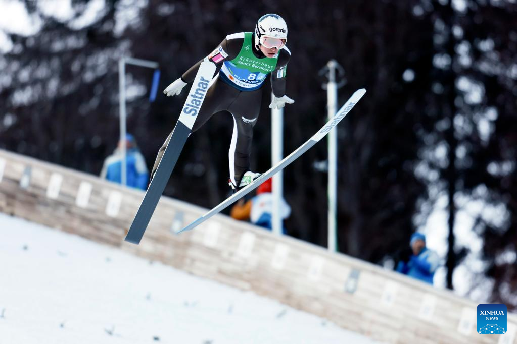 Anze Lanisek of Slovenia competes during the men's Ski Jumping Team HS138 at the FIS Nordic World Ski Championships in Planica, Slovenia, March 4, 2023. (Photo by Zeljko Stevanic/Xinhua)