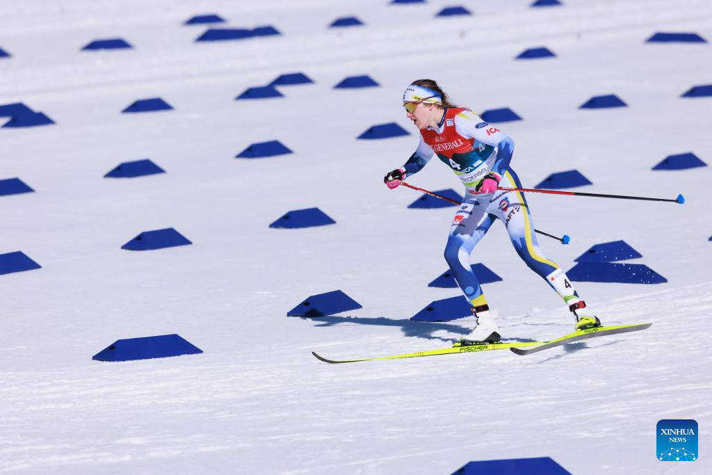Ebba Andersson of Sweden competes during the Women's 30km Mass Start Classic of Cross-Country skiing competition at the FIS Nordic World Ski Championships in Planica, Slovenia, March 4, 2023. (Photo by Zeljko Stevanic/Xinhua)