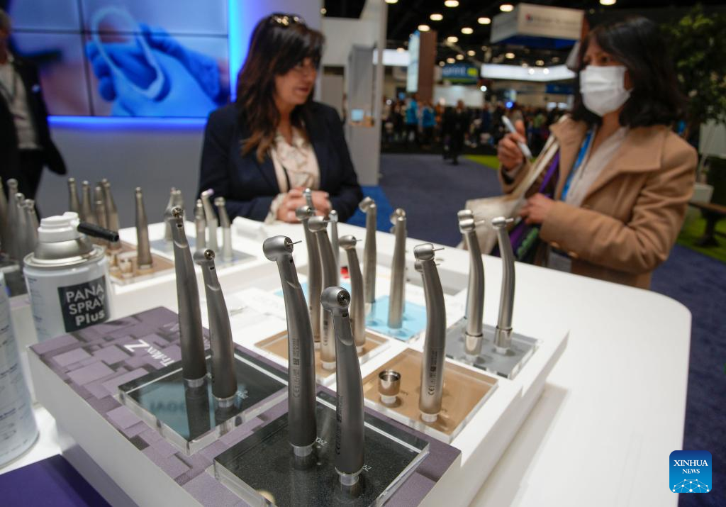 Some dental equipment is displayed at the 2023 Pacific Dental Conference in Vancouver, British Columbia, Canada, on March 9, 2023. The three-day event featured a trade show with more than 225 exhibitors showcasing their latest products, technologies and services in the dental industry. (Photo by Liang Sen/Xinhua)