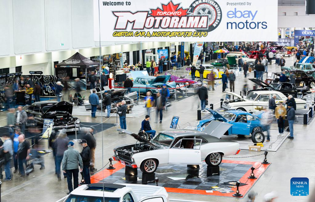 People visit the 2023 Toronto Motorama Custom Car & Motorsports Expo in Mississauga, the Greater Toronto Area, Canada, on March 10, 2023. Featuring hundreds of custom vehicles of all sorts, this annual three-day event kicked off here on Friday. (Photo by Zou Zheng/Xinhua)