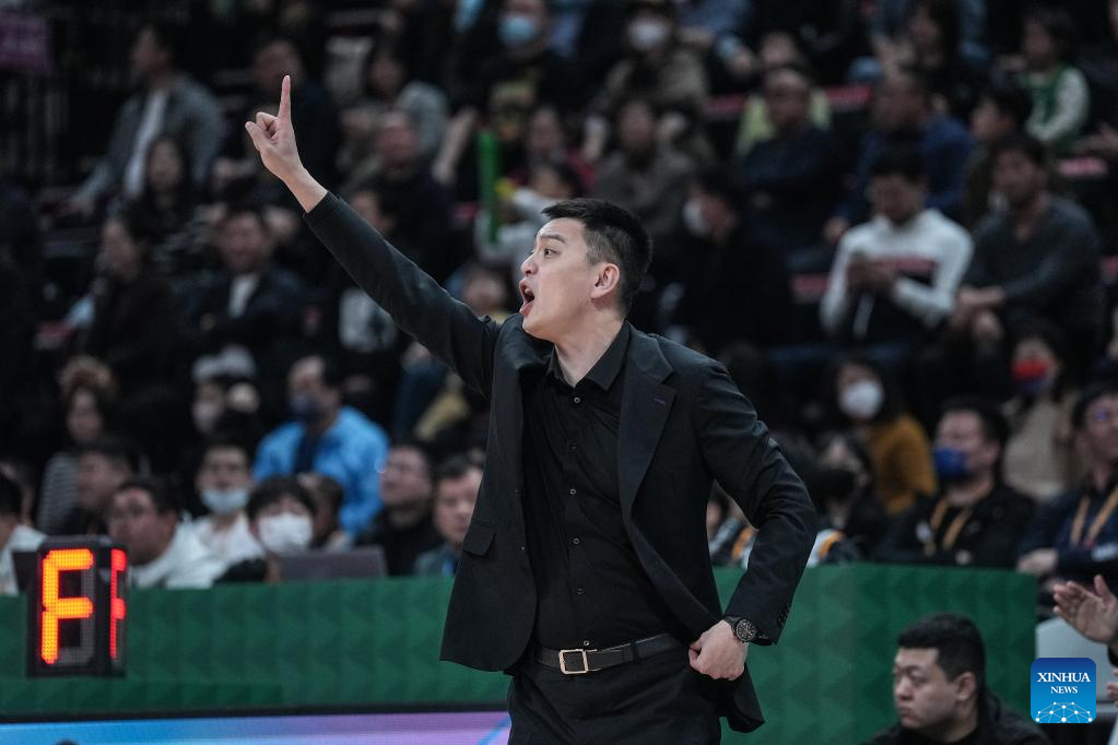 Head coach Yang Ming of Liaoning Flying Leopards gestures during the 33rd round match between Liaoning Flying Leopards and Shandong Heros at the 2022-2023 season of the Chinese Basketball Association (CBA) league in Shenyang of northeast China's Liaoning Province, March 10, 2023. (Xinhua/Pan Yulong)
