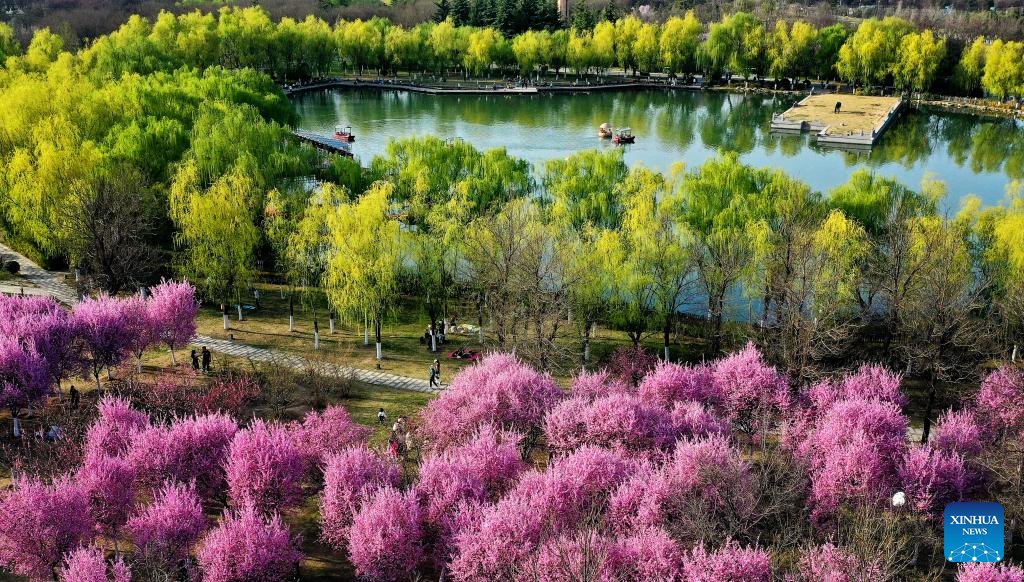 Tourists enjoy spring scenery at Daming Palace National Heritage Park in Xi'an, northwest China's Shaanxi Province, March 14, 2023. (Xinhua/Liu Xiao)