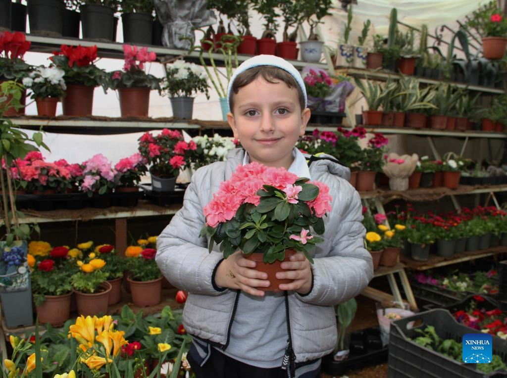 A flower seller prepares for Mother's Day in Beirut, Lebanon, March 20, 2023. The locals celebrate Mother's Day on March 21. (Photo by Bilal Jawich/Xinhua)