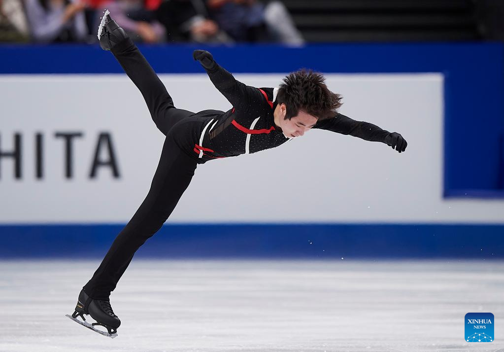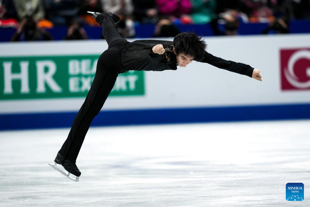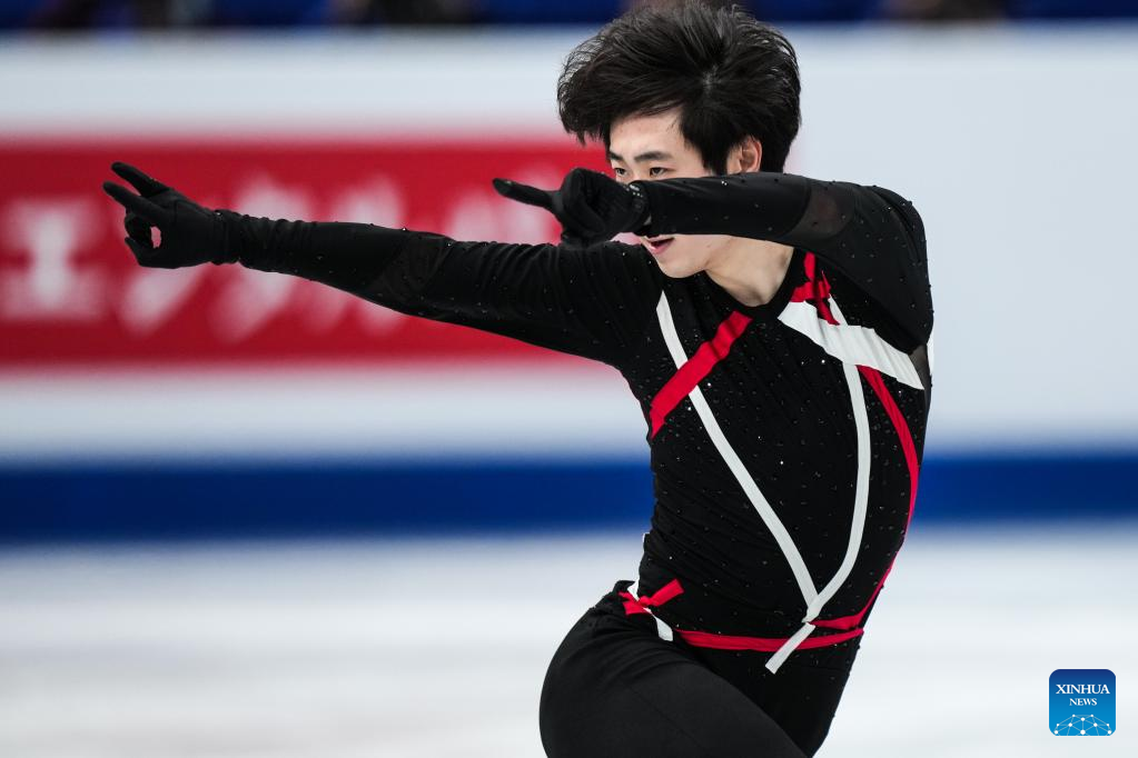 Jin Boyang of China competes during the men's short program at the ISU World Figure Skating Championships at Saitama Super Arena in Saitama, Japan, March 23, 2023. (Xinhua/Zhang Xiaoyu)