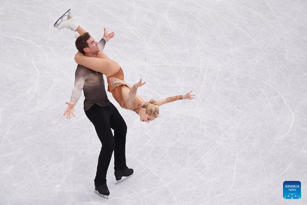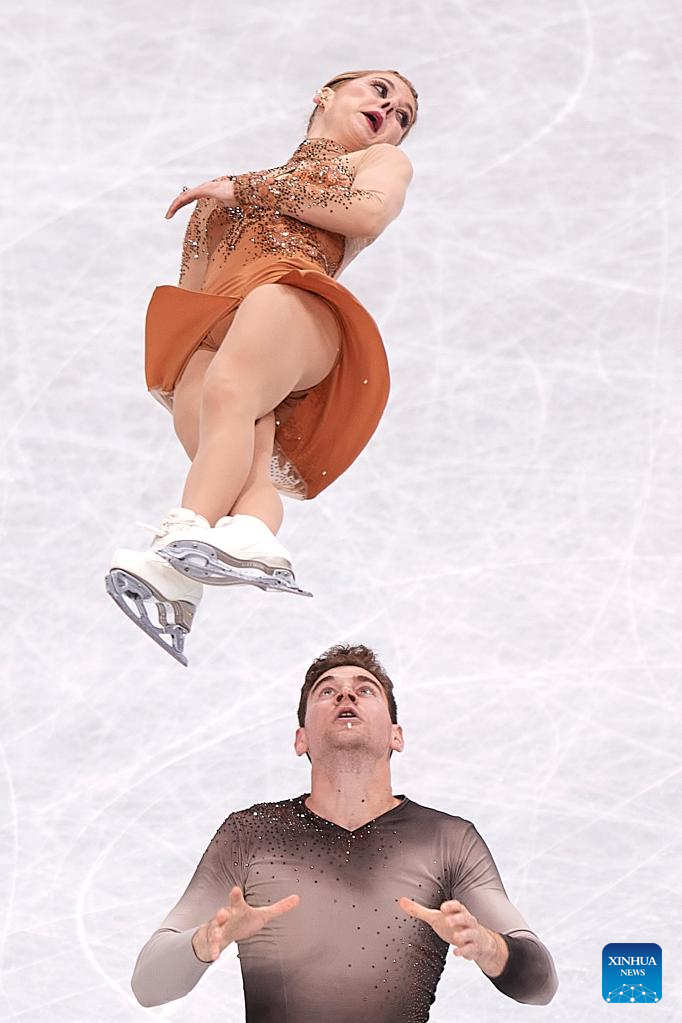 Alexa Knierim (L)/Brandon Frazier of the United States perform during the pairs free skating at the ISU World Figure Skating Championships at Saitama Super Arena in Saitama, Japan, March 23, 2023. (Xinhua/Zhang Xiaoyu)