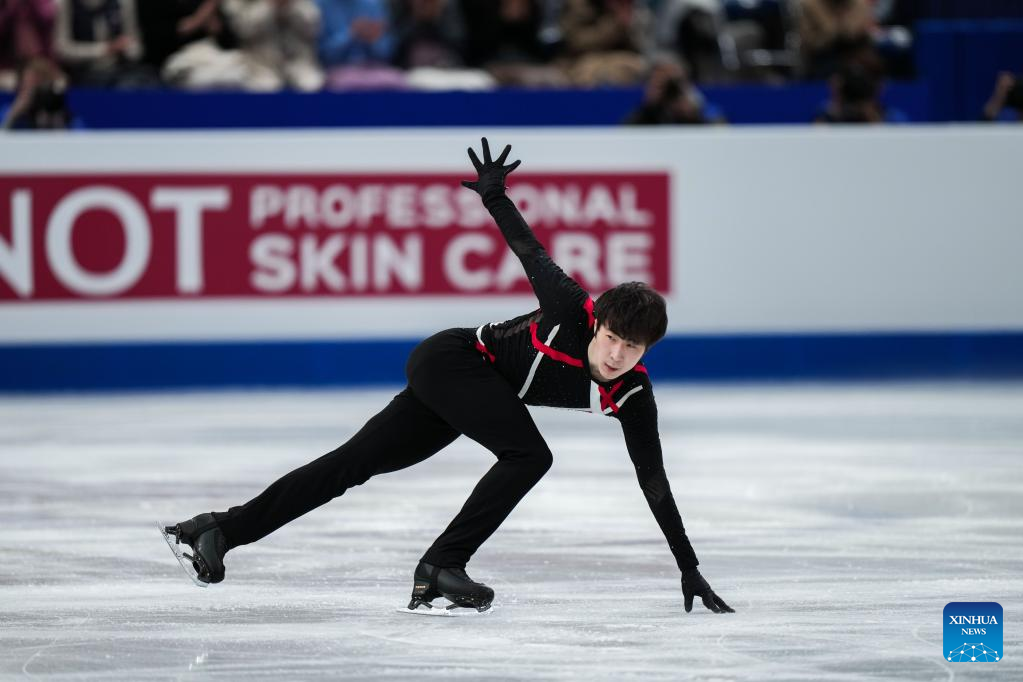 Tomono Kazuki of Japan performs during the men's short program at the ISU World Figure Skating Championships at Saitama Super Arena in Saitama, Japan, March 23, 2023. (Xinhua/Zhang Xiaoyu)