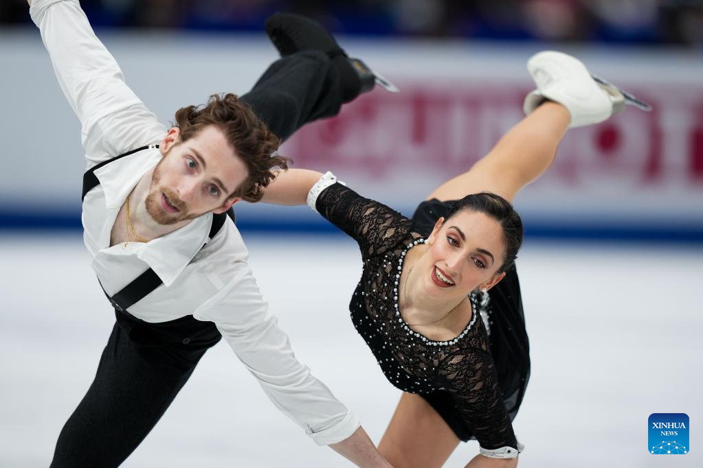 Sara Conti (L)/ Niccolo Macii of Italy perform during the pairs free skating at the ISU World Figure Skating Championships at Saitama Super Arena in Saitama, Japan, March 23, 2023. (Xinhua/Zhang Xiaoyu)