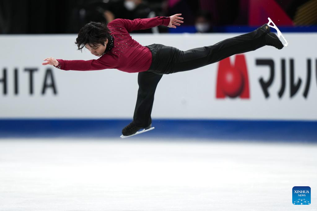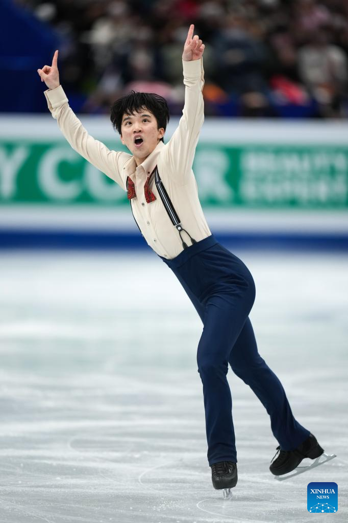 Uno Shoma of Japan performs during the men's short program at the ISU World Figure Skating Championships at Saitama Super Arena in Saitama, Japan, March 23, 2023. (Xinhua/Zhang Xiaoyu)