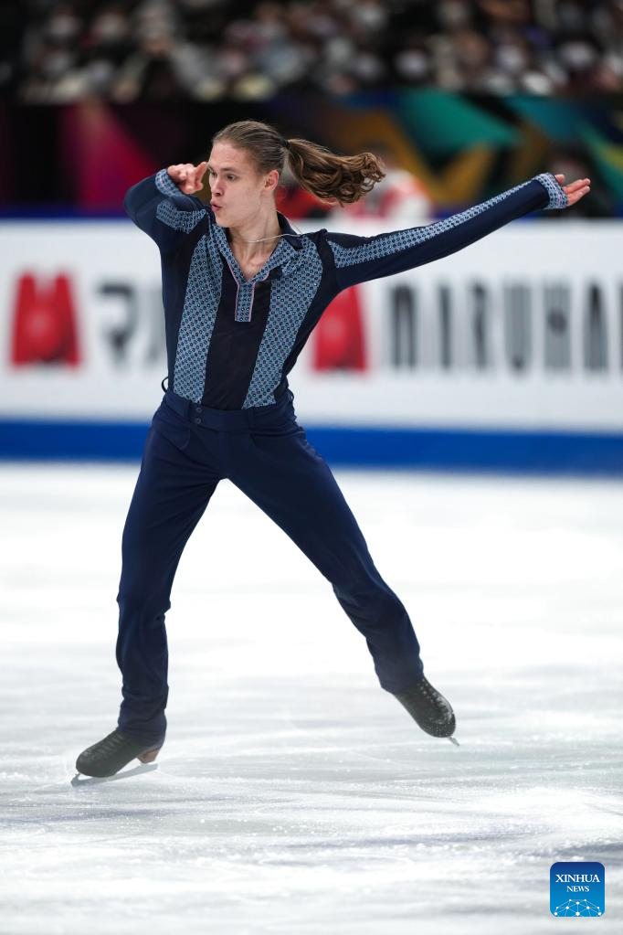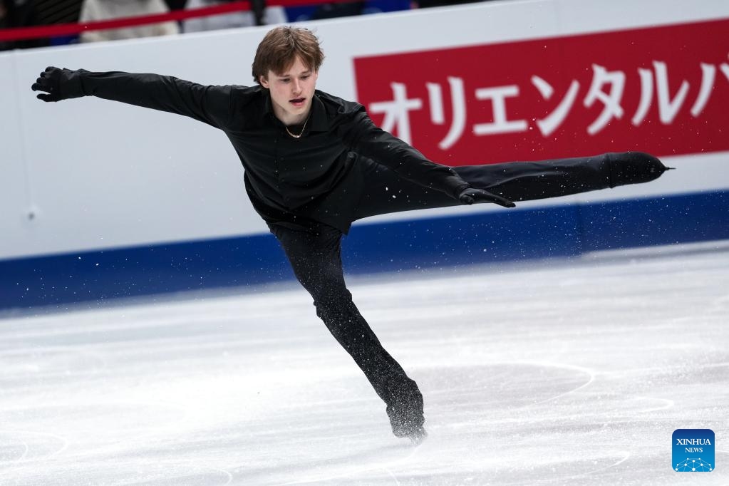 Deniss Vasiljevs of Latvia performs during the men's short program at the ISU World Figure Skating Championships at Saitama Super Arena in Saitama, Japan, March 23, 2023. (Xinhua/Zhang Xiaoyu)