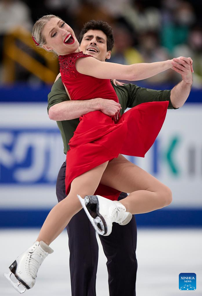 Madison Chock (L)/Evan Bates of the United States compete during the ice dance free dance of ISU World Figure Skating Championships held at Saitama Super Arena in Saitama, Japan, March 25, 2023. (Xinhua/Zhang Xiaoyu)