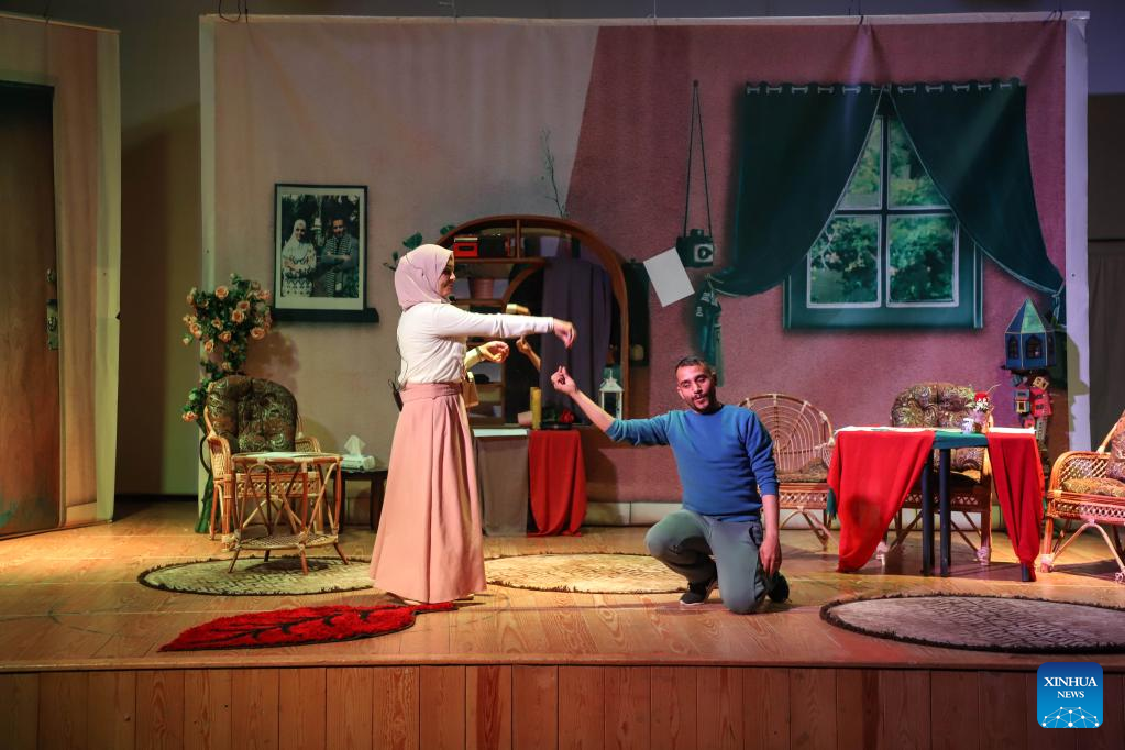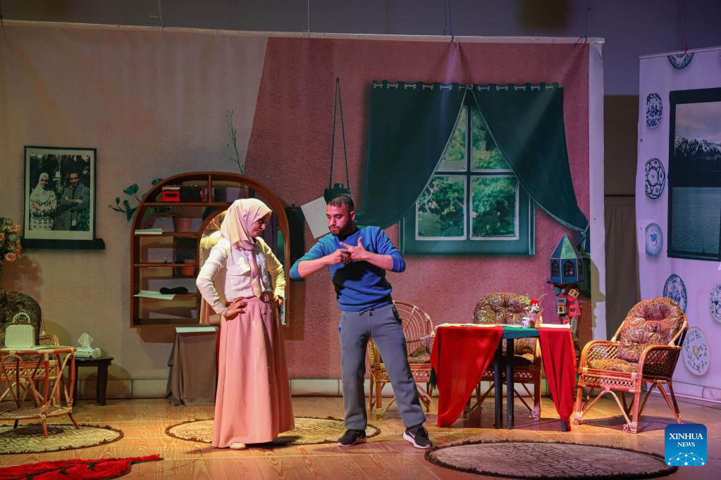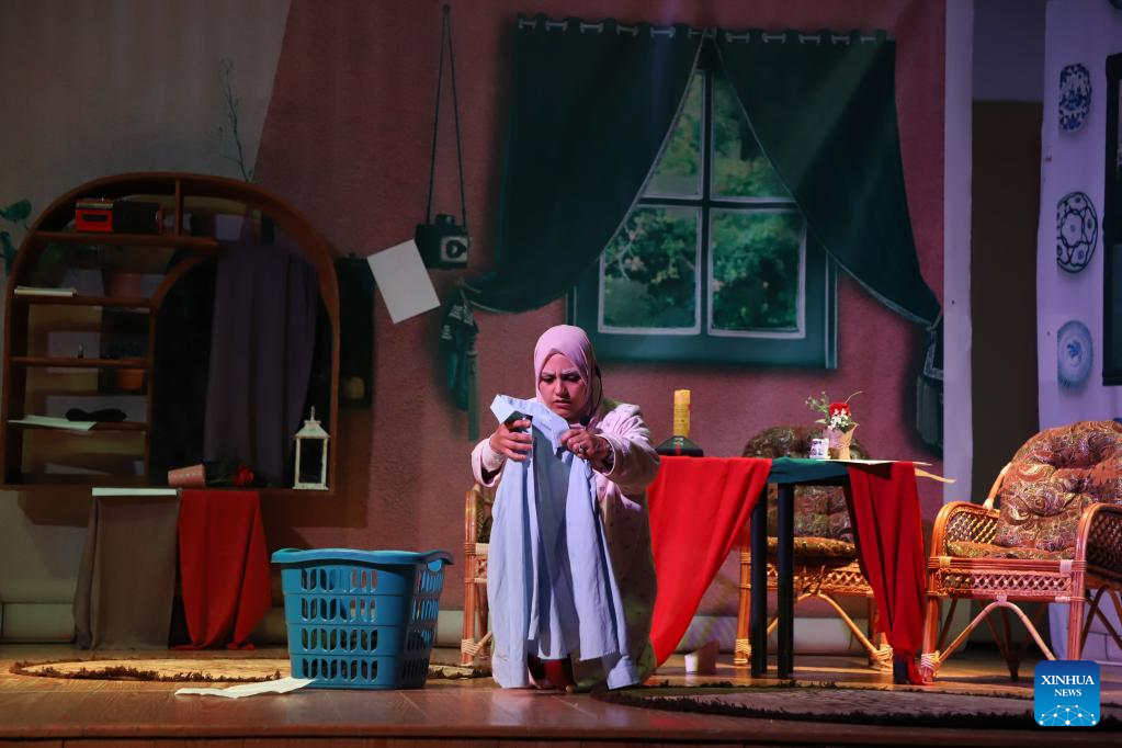 The theatrical show reflected cruel realities faced by many disadvantaged people in Gaza, including women suffering domestic abuse and people with disabilities, Hanin al-Samak, an official at the Future Development Commission organization, the organizer of the event, told Xinhua.