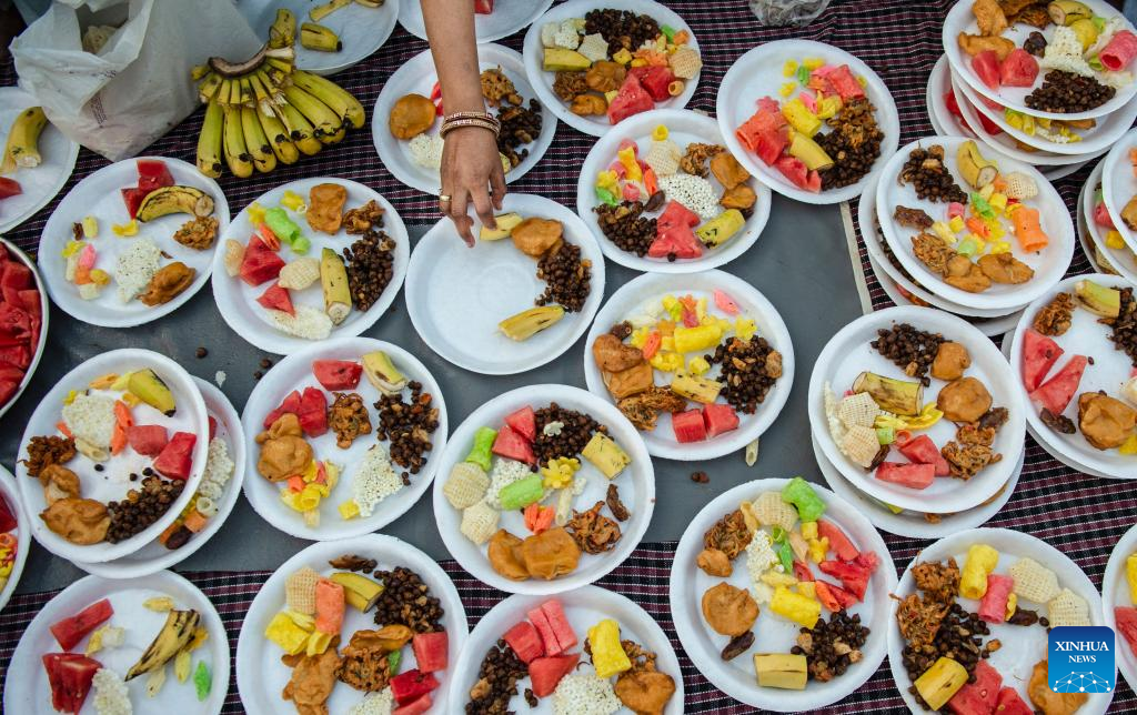 Women prepare snacks to break fast during the holy month of Ramadan at historic Jama Masjid (grand mosque) in New Delhi, India, April 3, 2023. (Xinhua/Javed Dar)
