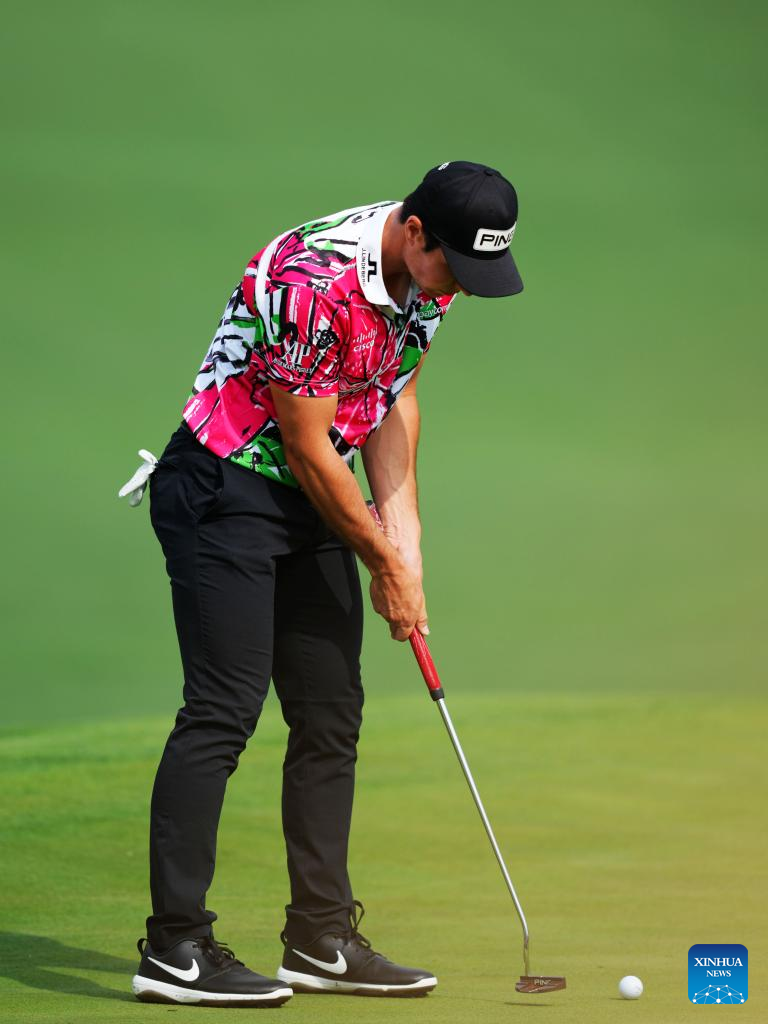 Viktor Hovland of Norway putts during the first round of the 2023 Masters golf tournament at Augusta National Golf Club in Augusta, the United States, on April 6, 2023. (Xinhua/Wu Xiaoling)