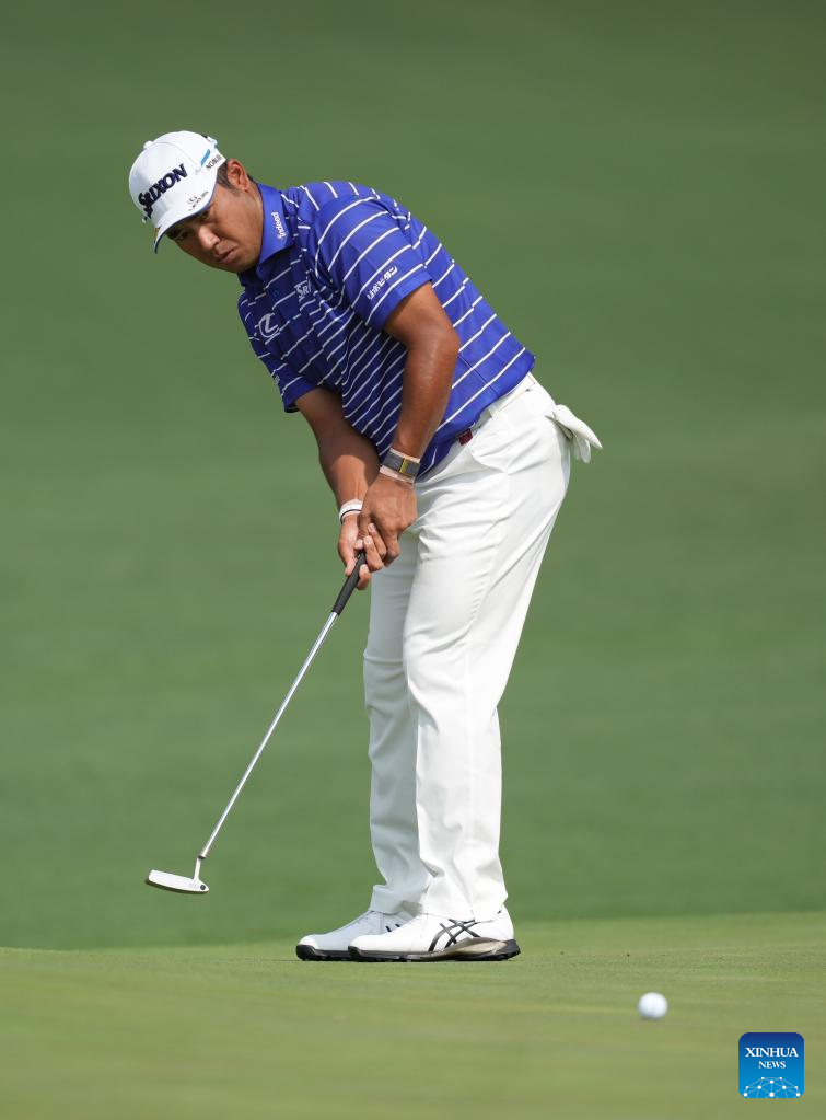 Hideki Matsuyama of Japan putts during the first round of the 2023 Masters golf tournament at Augusta National Golf Club in Augusta, the United States, on April 6, 2023. (Xinhua/Wu Xiaoling)