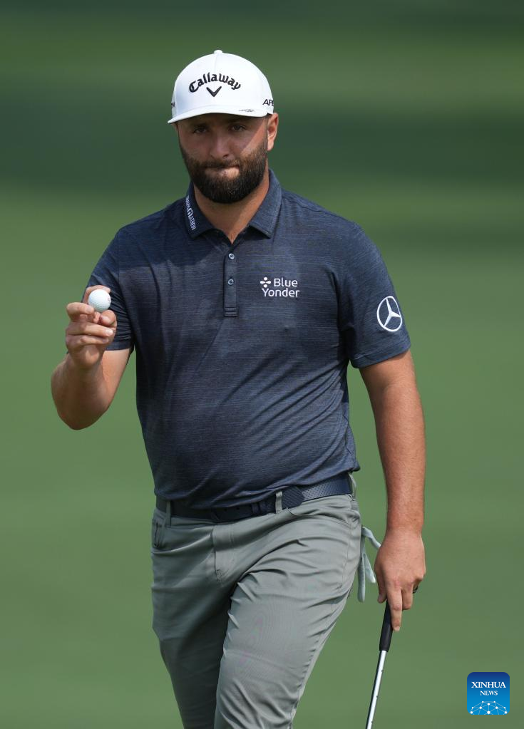 Jon Rahm of Spain reacts during the first round of the 2023 Masters golf tournament at Augusta National Golf Club in Augusta, the United States, on April 6, 2023. (Xinhua/Wu Xiaoling)