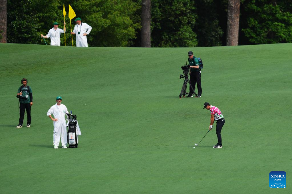 Viktor Hovland of Norway hits during the first round of the 2023 Masters golf tournament at Augusta National Golf Club in Augusta, the United States, on April 6, 2023. (Xinhua/Wu Xiaoling)