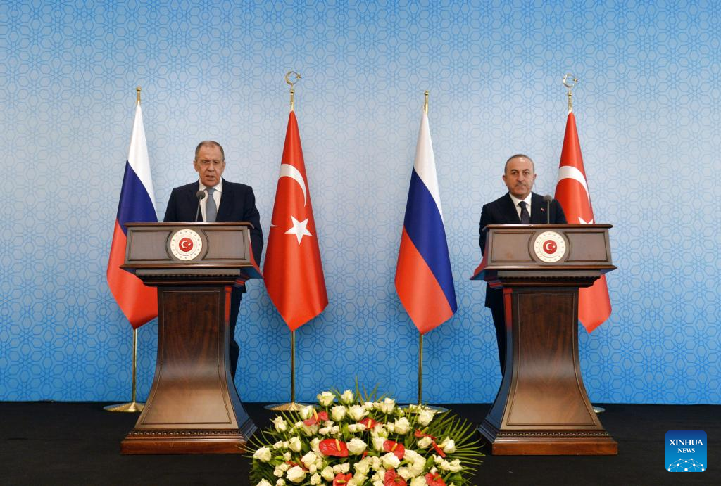 ANKARA, April 8 (Xinhua) -- Türkiye agrees with Russia to solve the problems concerning Russian fertilizer and grain exports so that the Black Sea grain deal could be extended, Turkish Foreign Minister Mevlut Cavusoglu said Friday.