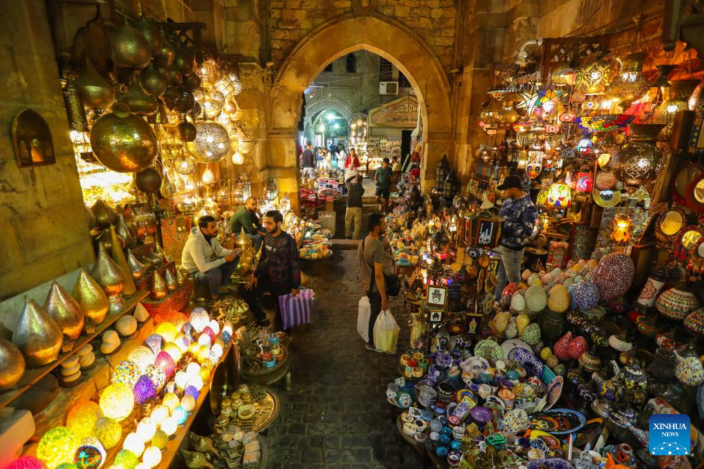 People visit the Khan el-Khalili market during Ramadan in Cairo, Egypt, April 8, 2023. (Xinhua/Sui Xiankai)