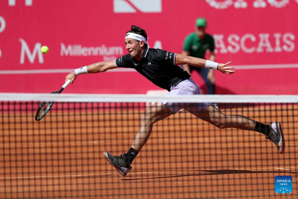 Casper Ruud of Norway competes during the men's singles final against Miomir Kecmanovic of Serbia at the Clube de Tenis do Estoril in Cascais, Portugal, on April 9, 2023. (Photo by Pedro Fiuza/Xinhua)