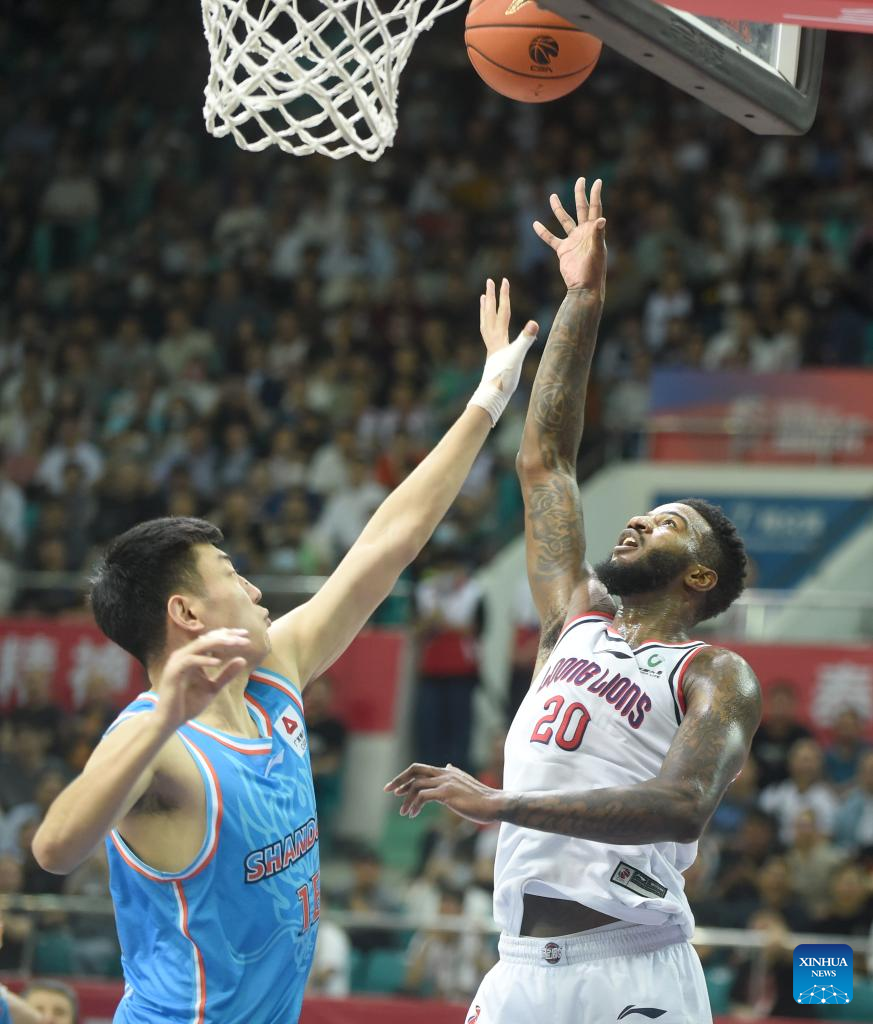 JINAN, April 11 (Xinhua) -- The Guangzhou Loong Lions beat the Shandong Heroes 89-80 on their home court booking the first ticket to the second round, while the Jiangsu Dragons edged the Shanghai Sharks 97-90 to tie 1-1 in the best-of-three first round of the 2022-23 Chinese Basketball Association (CBA) playoffs on Tuesday.