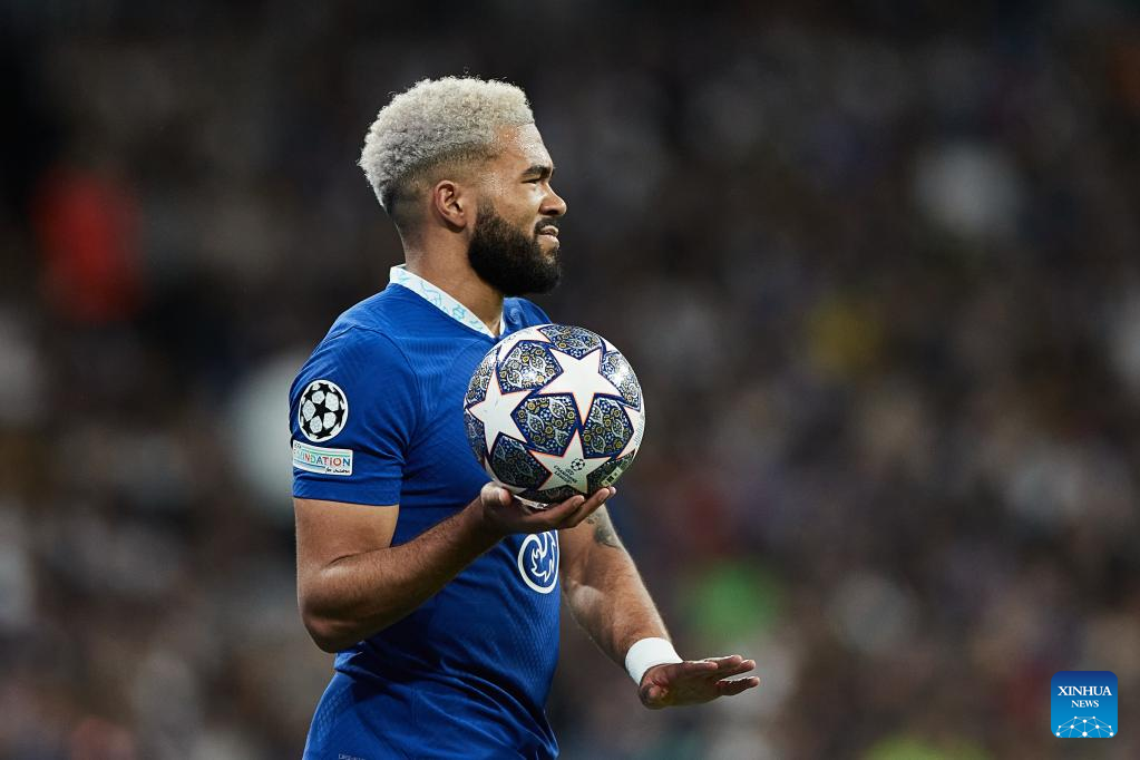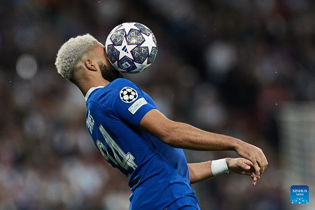 Chelsea's Reece James controls the ball during the UEFA Champions League quarterfinal first Leg match between Real Madrid and Chelsea FC in Madrid, Spain, on April 12, 2023. (Xinhua/Meng Dingbo)