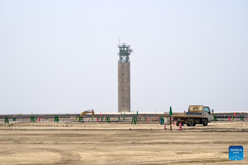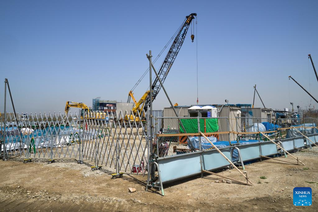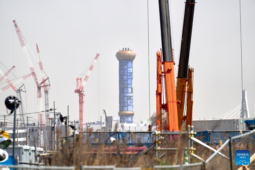 This photo taken on April 13, 2023 shows the construction site of the venue for World Expo 2025 at Osaka's Yumeshima artificial island in Osaka, Japan. Japan on Thursday broke ground on its venue for World Expo 2025 to be held in Osaka prefecture of the country's Kansai region. Themed "Designing Future Society of Our Lives," the World Expo 2025 is scheduled to be held from April 13 to Oct. 13, 2025. (Xinhua/Zhang Xiaoyu)