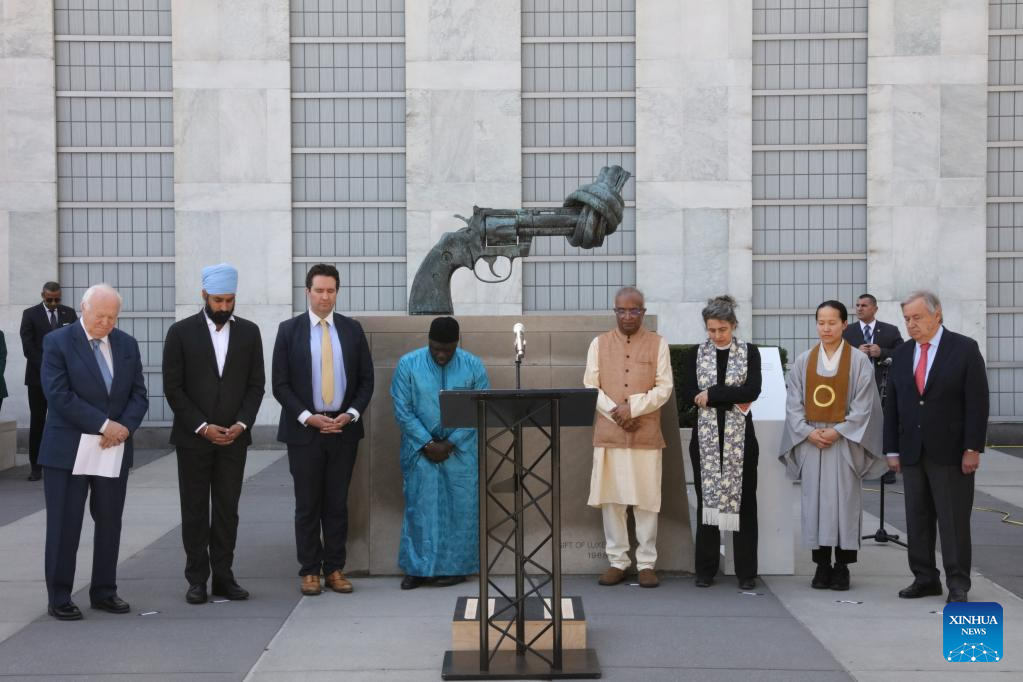 An interfaith moment of prayer for peace at a special time on the spiritual calendar is held at the UN headquarters in New York, on April 14, 2023. The world body on Friday held the interfaith moment of prayer for peace at a special time on the spiritual calendar, when Christians are celebrating Easter, Jews are marking Passover, Muslims are observing the holy month of Ramadan, and Sikhs are celebrating Vaisakhi. (Xinhua/Xie E)