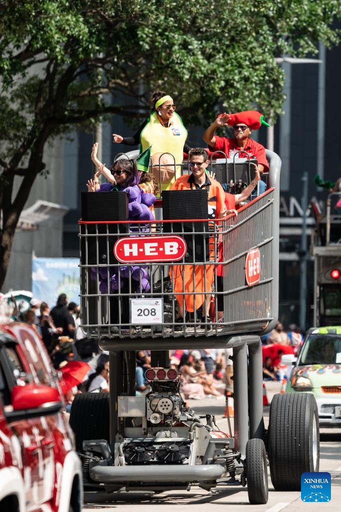 An art car participates in the 36th Houston Art Car Parade in Houston, Texas, the United States, April 15, 2023. The yearly event gathered over 250 art cars and other exhibits, drawing in more than 250,000 spectators.