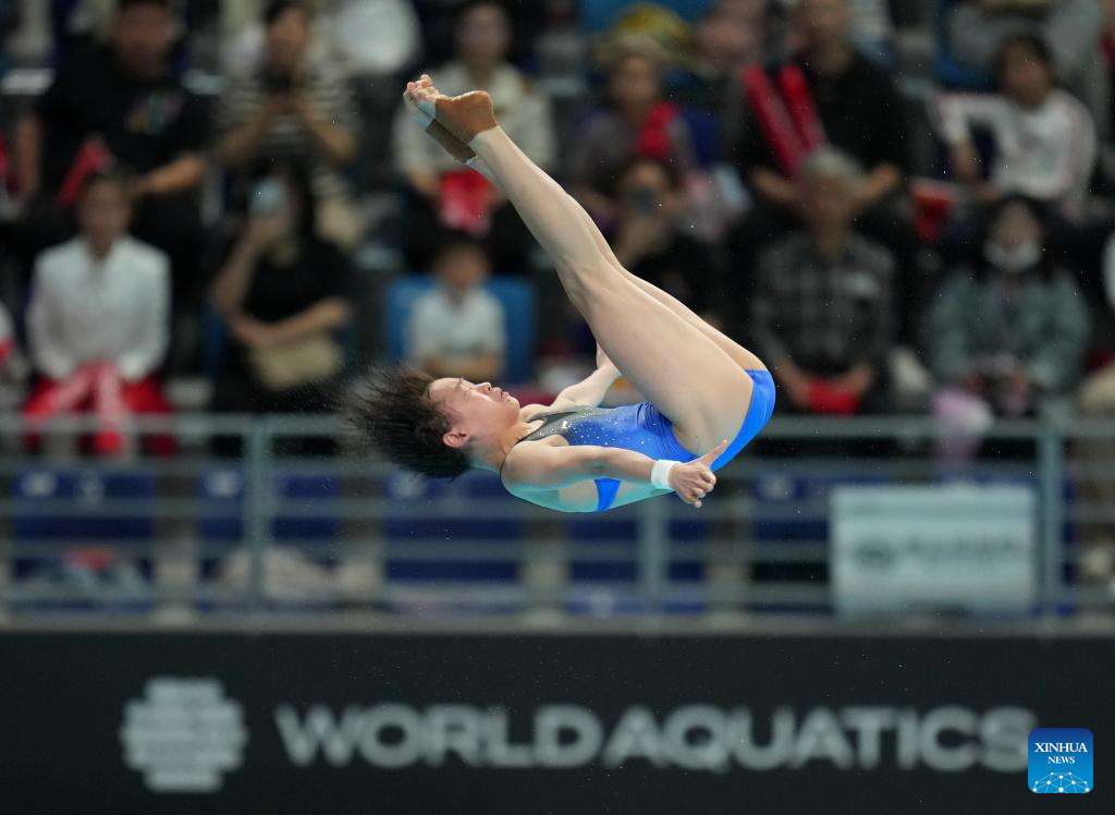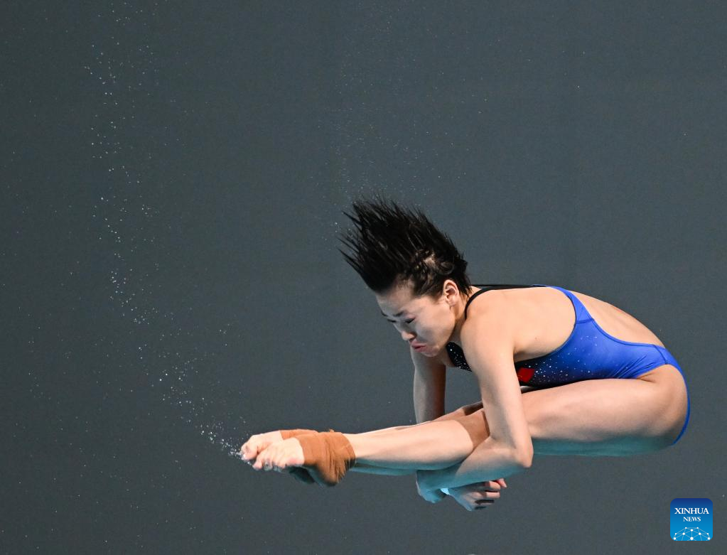 Quan Hongchan of China competes during the women's 10m platform preliminary at the FINA Diving World Cup in Xi'an, northwest China's Shaanxi Province, April 16, 2023. (Xinhua/Li Yibo)