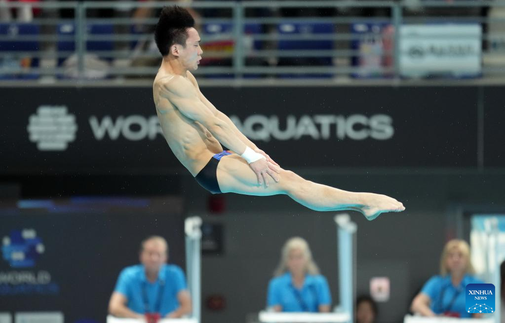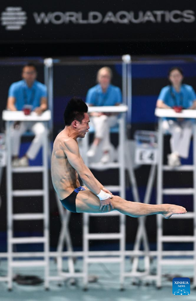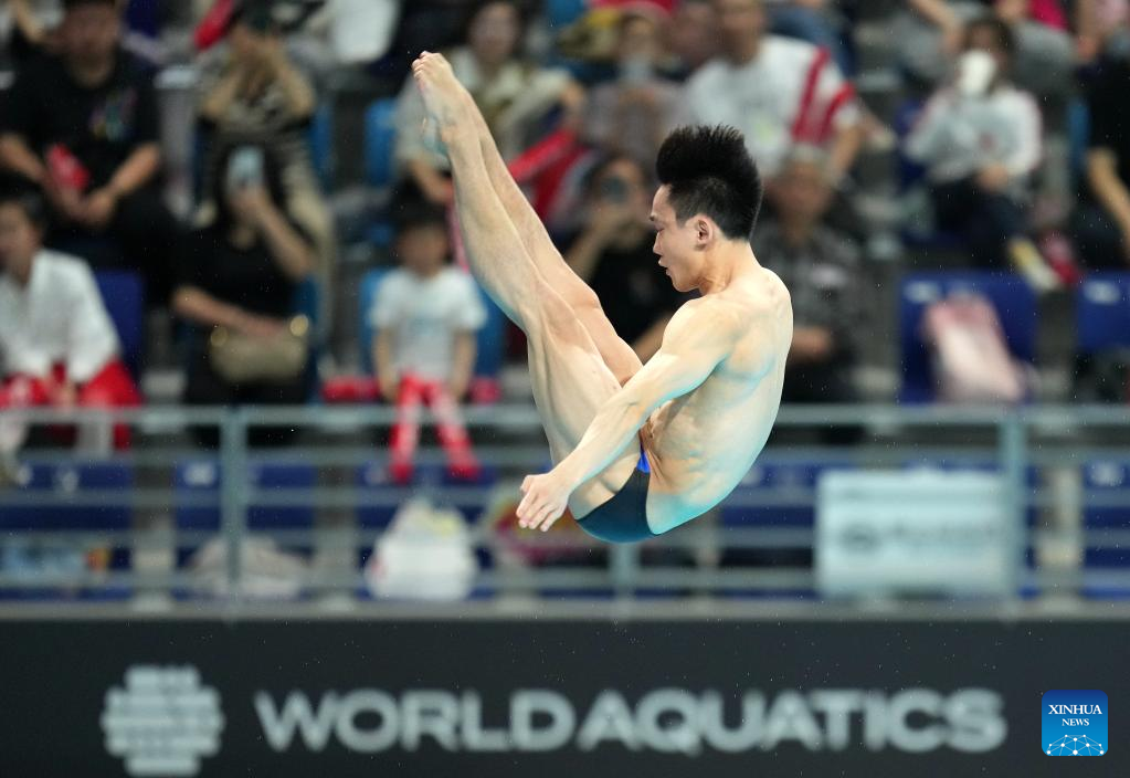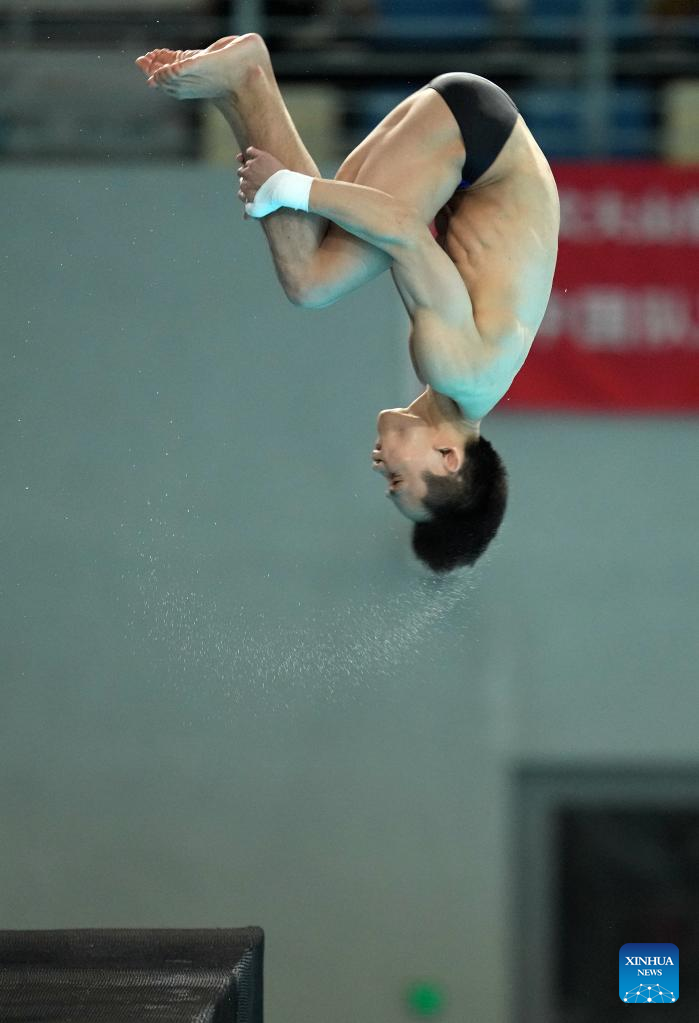 Yang Hao of China competes during the men's 10m platform preliminary at the FINA Diving World Cup in Xi'an, northwest China's Shaanxi Province, April 16, 2023. (Xinhua/Zhang Bowen)